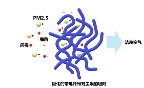 通常在熔噴布的生產過程中會駐極處理,讓無紡布帶上更多靜電,具有靜電吸附作用。靜電吸附是指當過濾材料的纖維帶電時,通過荷電纖維的庫侖力實現對粉塵細菌病毒的捕獲。