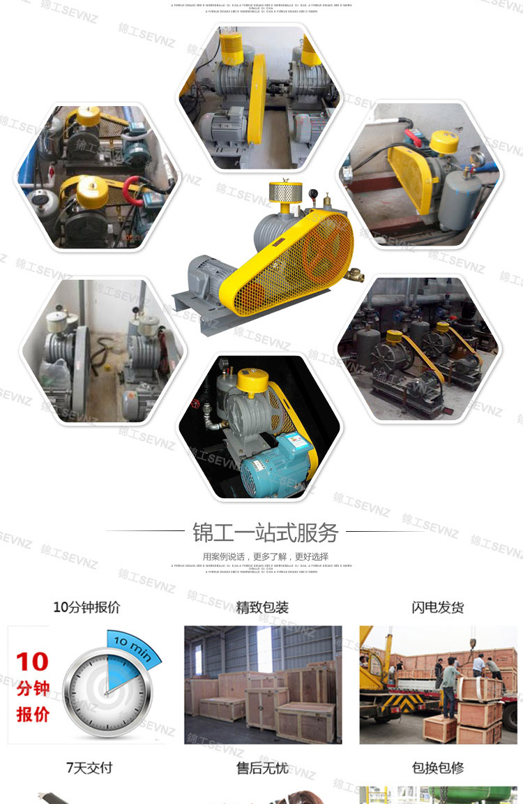 回轉鼓風機特點:1、結構體積小、運行排出風量大、正常運行噪聲低、能耗低。采用通過改變密閉空間的原理,雖然結構體積小,但運行排出風量大、節能環保、運行噪音小等特殊優點是其他形式的風機無法比擬的。2、安裝方便,運行平穩,結構特性好。小型機種運轉時只要放置妥當則振動很小,不需要加裝防振裝置,安裝方便。)3、運行抗負荷變化能力大,輸出風量穩定。例如:在污水處理行業中,當曝氣池水深變化時,即壓力發生變化,則負荷大小發生變化,但是排出風量隨壓力變化而變化甚小。4、帶有空氣緩沖室,排出氣體平穩。全部機種均帶有空氣緩沖室,可有效防止空氣脈動,使排出氣體連續平穩。5、材質精良,結構巧妙,性能卓越。鼓風機全部采用優質的材料,結構精巧,堅固耐用,性能卓越,長期使用故障少。6、保養簡單,故障少,壽命長。低轉速,磨損小,壽命長。7、錦工回轉風機標配電機為山東華力電機集團股份有限公司生產,質量穩定可靠。8、錦工回轉風機出廠前都經過了48小時的試運行,調試合格才能發貨,保證了風機出廠的質量。售后服務:錦工回轉風機若在保修期內出現質量問題,能現場解決的公司維修人員將在48小時內趕赴現場服務,若風機出現重大質量問題,可以調換新風機。